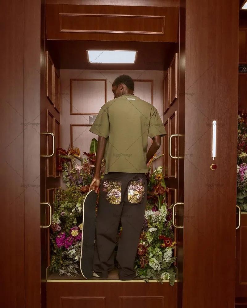تميّز بإطلالة فنية وجريئة مع بنطال "حديقة الجيوب" بلونه الأسود الأنيق وتطريز الجيوب الخلفية برسومات أزهار غنية بالتفاصيل والألوان. تصميم يجمع بين البساطة في الشكل الأمامي والإبداع في الخلف، بقصة مريحة وساقين واسعتين قليلاً تناسب الإطلالات اليومية أو المميزة. مثالي لعشاق الموضة الذين يحبون لفت الأنظار بالتفاصيل المختلفة.