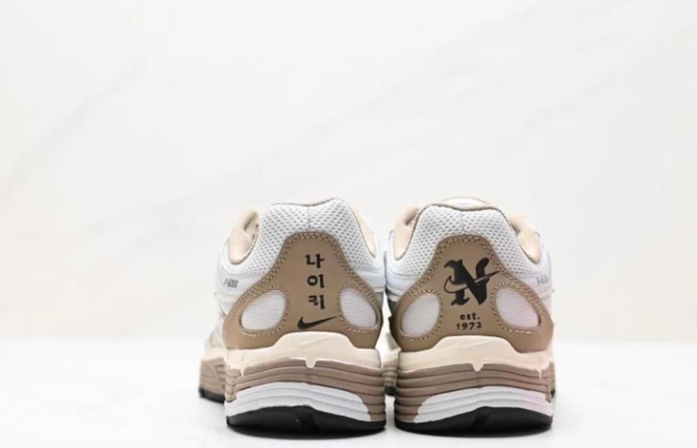 The Nike P-6000 "Hangul Day" is a colorway of the casual shoe inspired by the holiday that celebrates the invention of the Korean alphabet. Inspired by performance running sneakers from the early 2000s, the P-6000 has a retro-meets-modern appearance that lends itself to casual wear in today’s sneaker landscape. The P-6000 seen here features a white mesh base with tonal and beige overlays. A Khaki-colored Swoosh is found on the sides. Traditional Korean characters are seen on the heel of the left shoe while a special “N” logo with “Est. 1972” is featured on the heel of the right shoe.