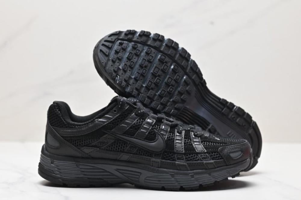 Nike's P-6000 is a special colourway of the iconic sneaker that combines style elements from the Pegasus 25 and 2006. Inspired by running shoes from the 2000s, the modern design features a mesh base with suede overlays. A Swoosh logo is located on either side of the shoe.